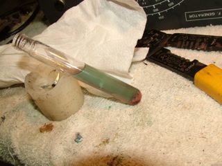 SnCl2 solution with excess NaOH). The precipitate was brown when hydrated, but dried to a beautiful green.