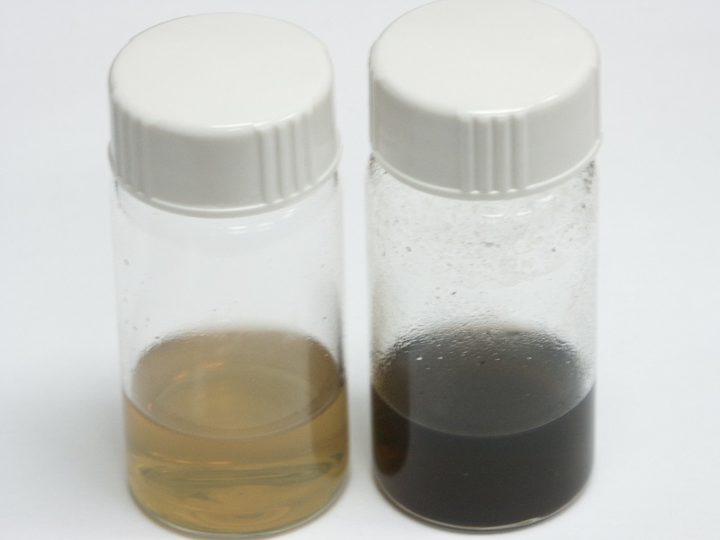 was a vague bluish glow. When the contents of the vial were inspected afterward, the pale-yellowish appearance of the GO