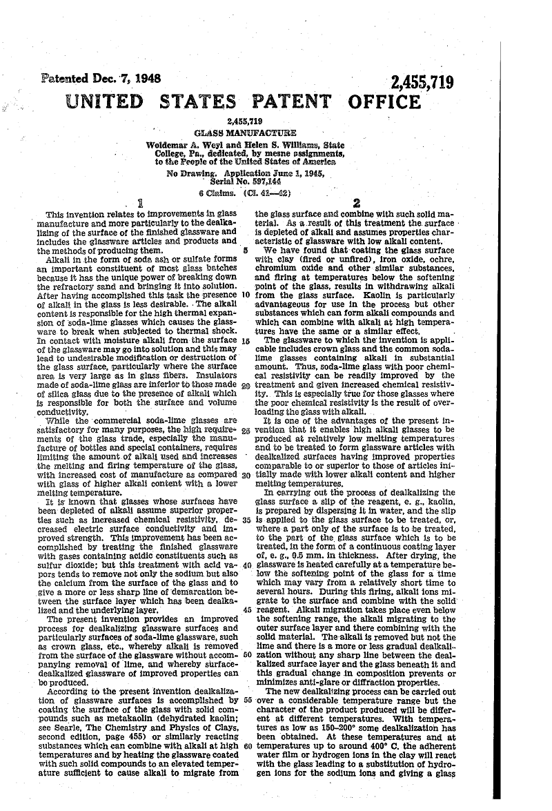 In this process soda-lime glass was first coated with a slip of alkali-free kaolin clay, which was then fired at practical