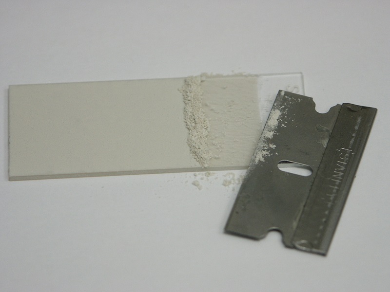 Kaolin) in water, I thinly coated one-half of a soda-lime glass slide. The other half was left bare for comparison.