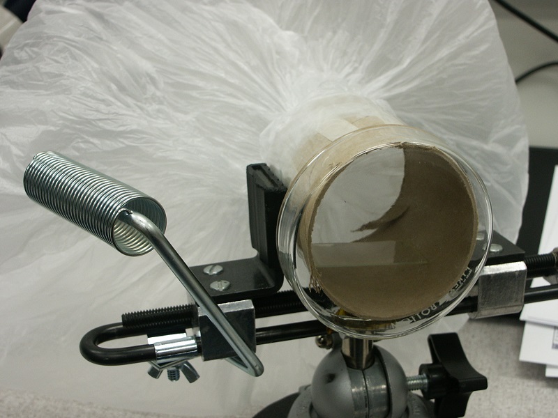 slide is placed directly into the tube (as can be seen), a glass dish held over the end of the tube, and then the bag is quickly