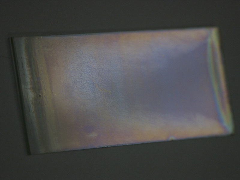 the coating ranges from violet to blue when viewed at an angle. When observed straight through it is practically