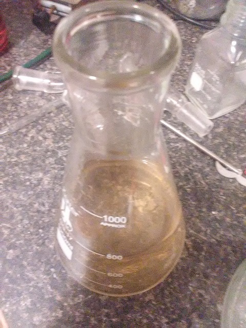 That is some tarry ass stuff too, but amazingly comes out of the glass easy. Finally bought a small (100ml) boiling flask for the pursuit of my