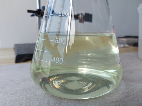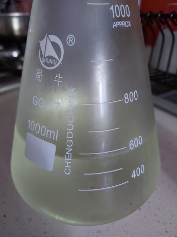 Pic 6 stop heating after foaming ceased; solution is pale yellow