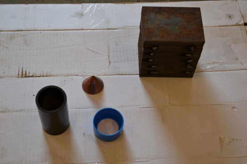 Well here are a few pictures from a shaped charge experiment. Performance was nothing to brag about, but I learned a few things.