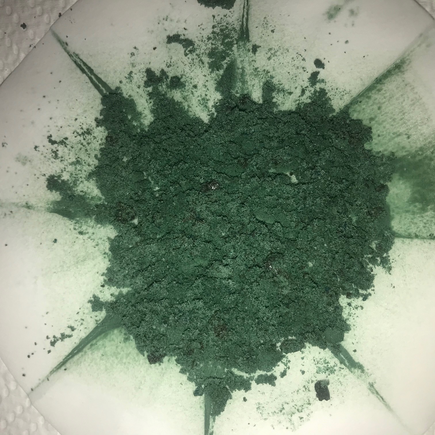 remainder went onto a steam bath for some 15 minutes. It was then ground in a mortar and the final result is the below dry free-flowing pale green