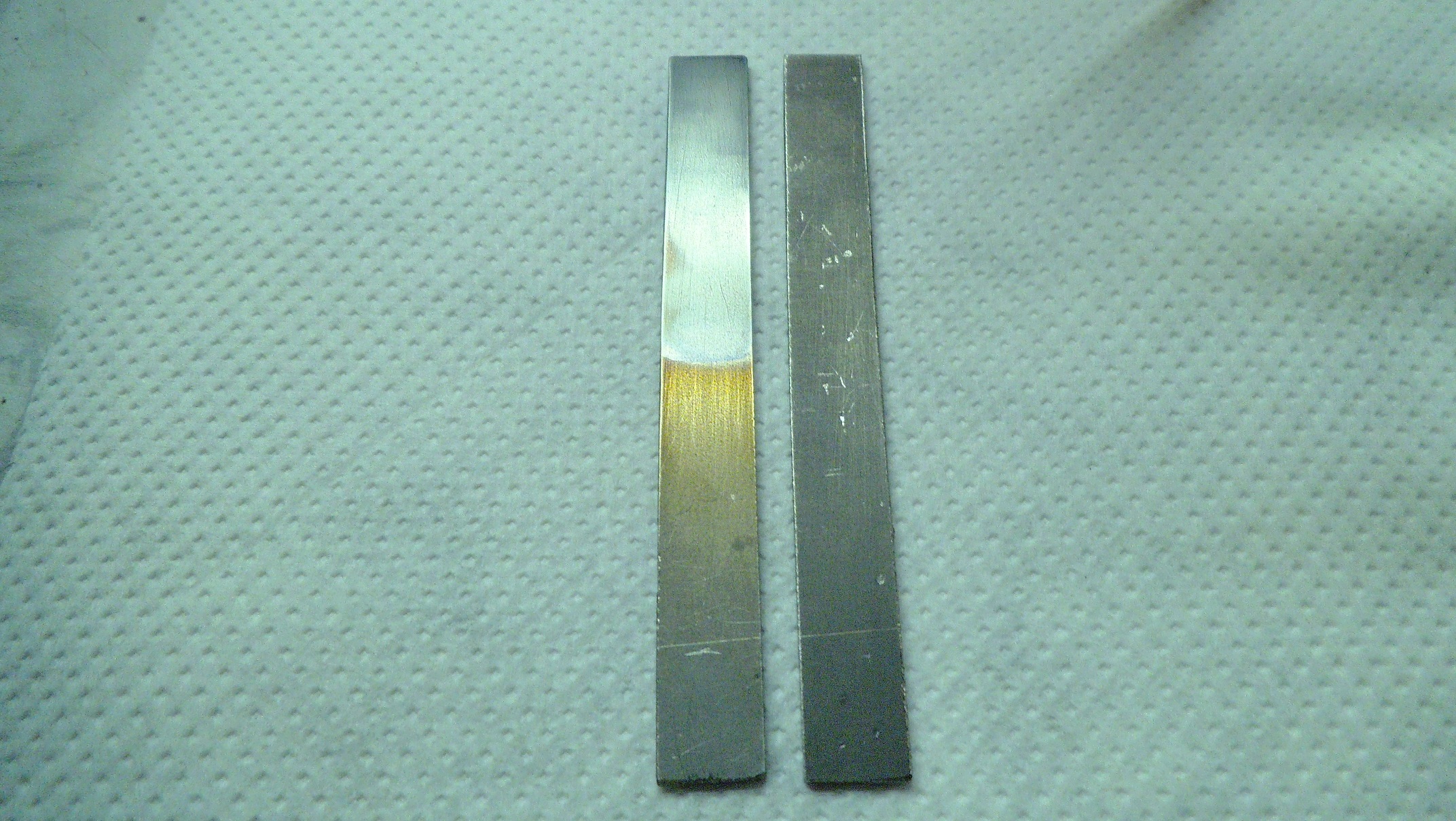 I also cleaned another strip of the same Ti stock thoroghly by sanding it completely to bare metal and placed it into the lead dioxide bath for