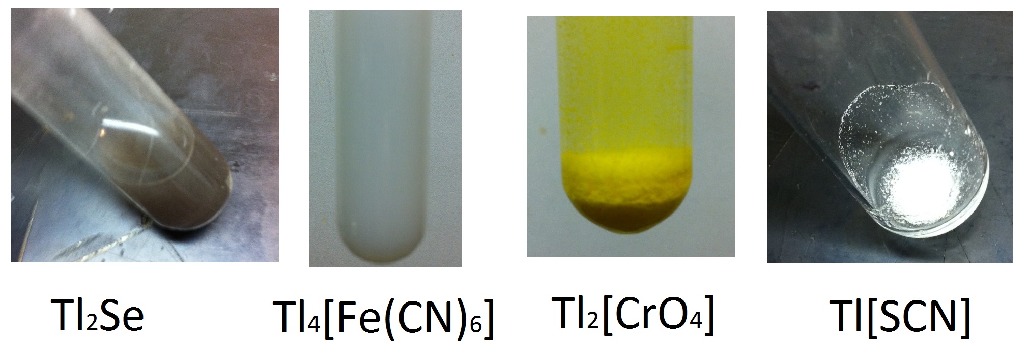 it surprises how the Thallium sample can form a white compound and a yellow one. Usually I check these reactions before I post them here but I didnt