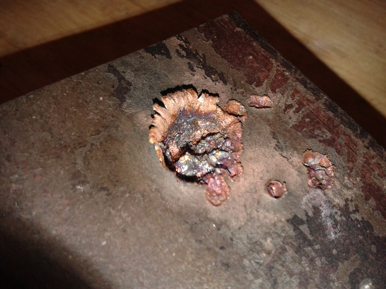 It didn't penetrate the ten mm angle got almost 9mm through in half of the 13mm dia hole and bulged the back of the plate I am drying the ammonium