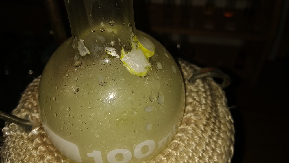 No, I haven't forgotten, but the amount of water in my first try was much less than what was used in the sodium hypochlorite oxidation (by a factor of