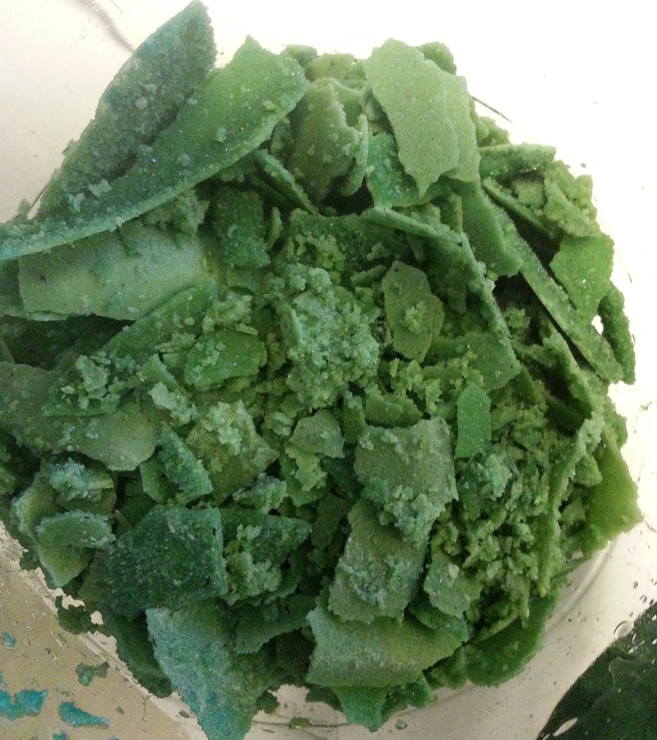 wire. I ended up[ with an unusual green blue instead of the various shades of blue (darker, more sulfate was present). I then removed the liquid and