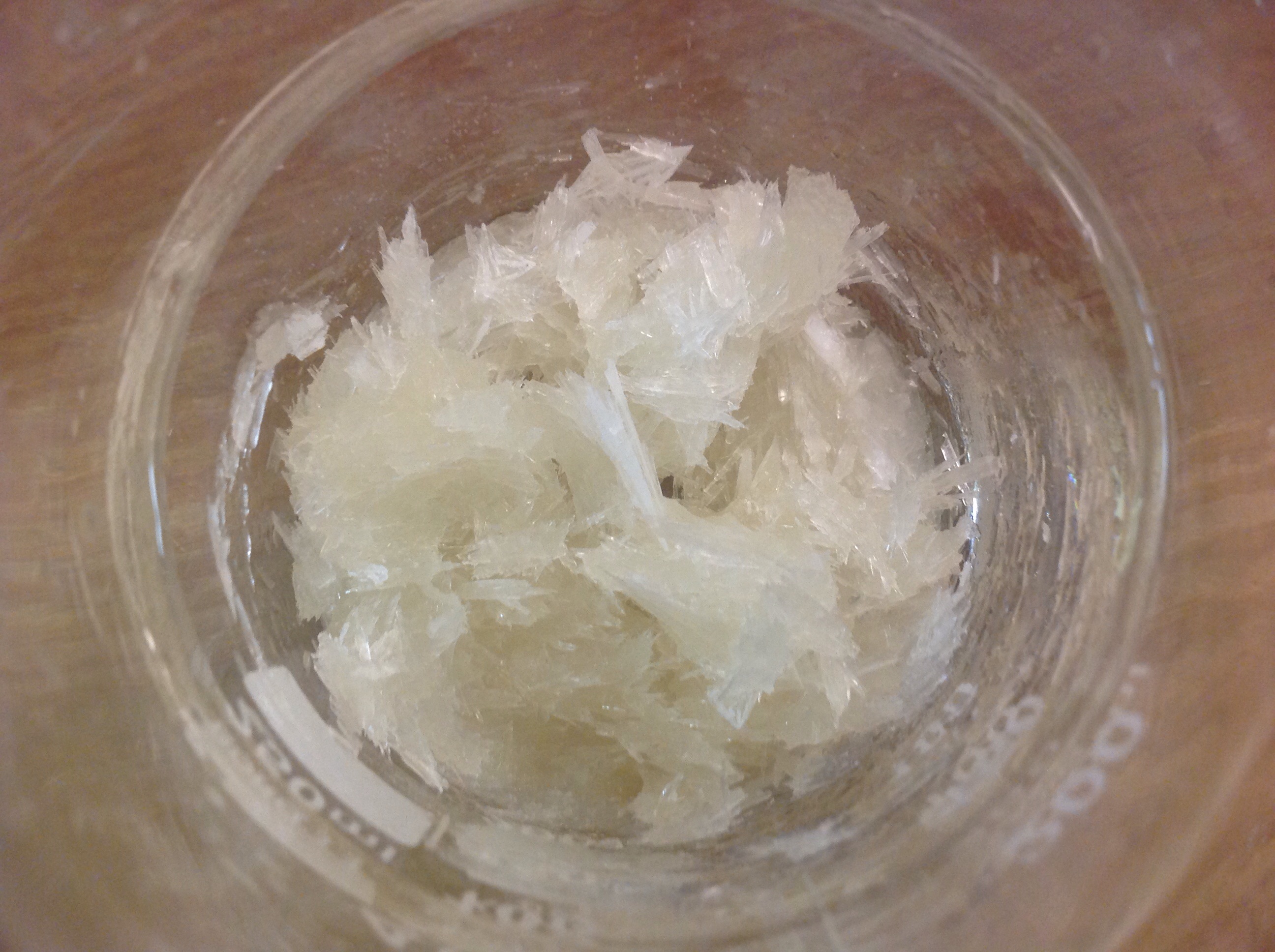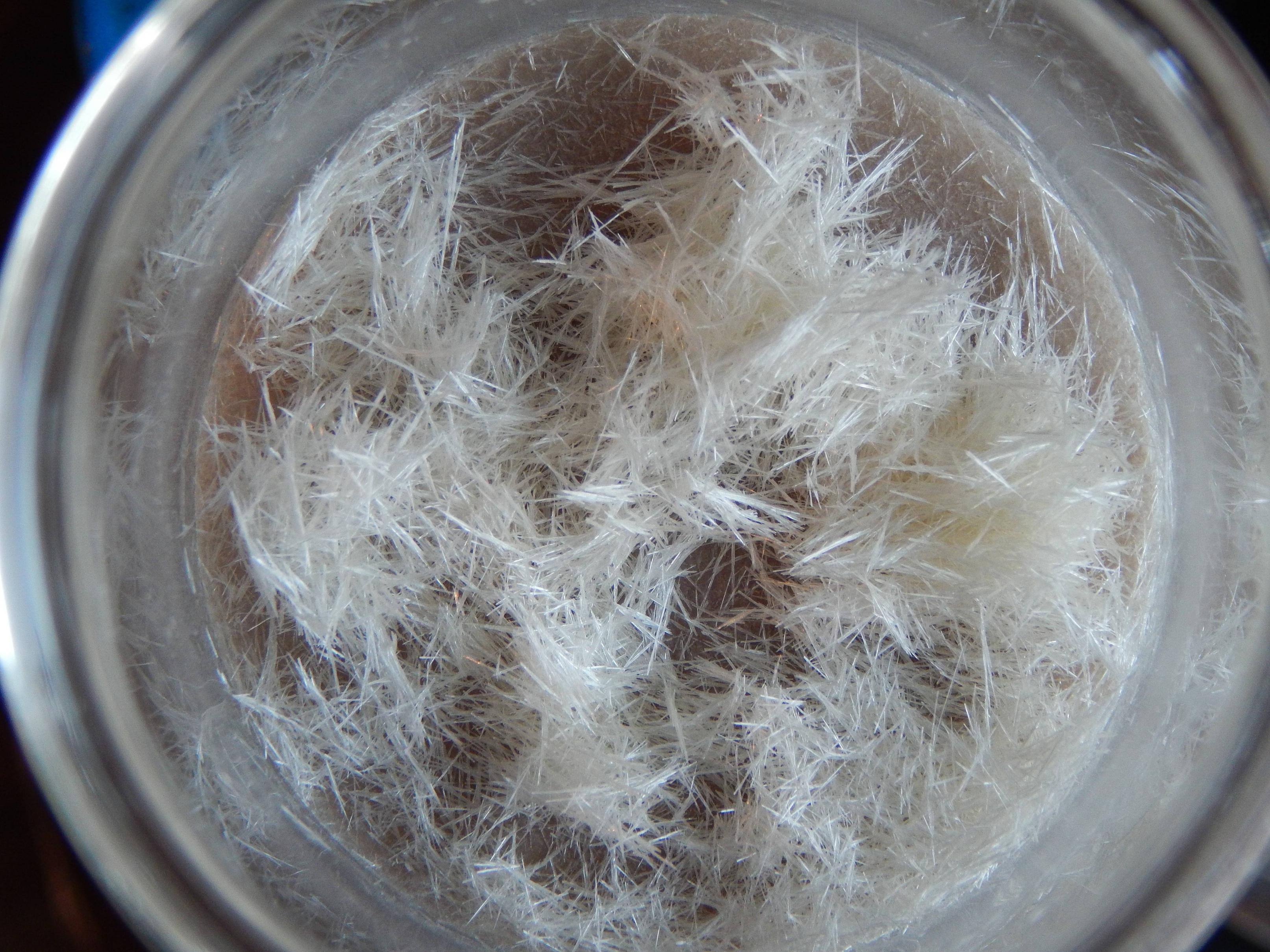 Here's some nice crystals of phthalic anhydride I got from a recrystallization.