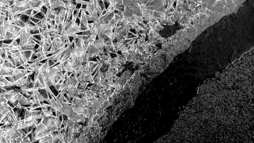 Ice crystals in the parking lot after winter storm Helena:
