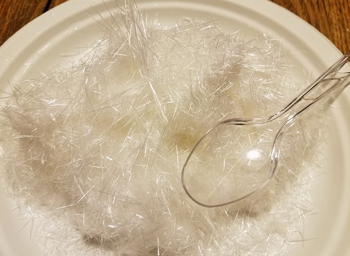 Corn syrup flowing over & through glass beads: