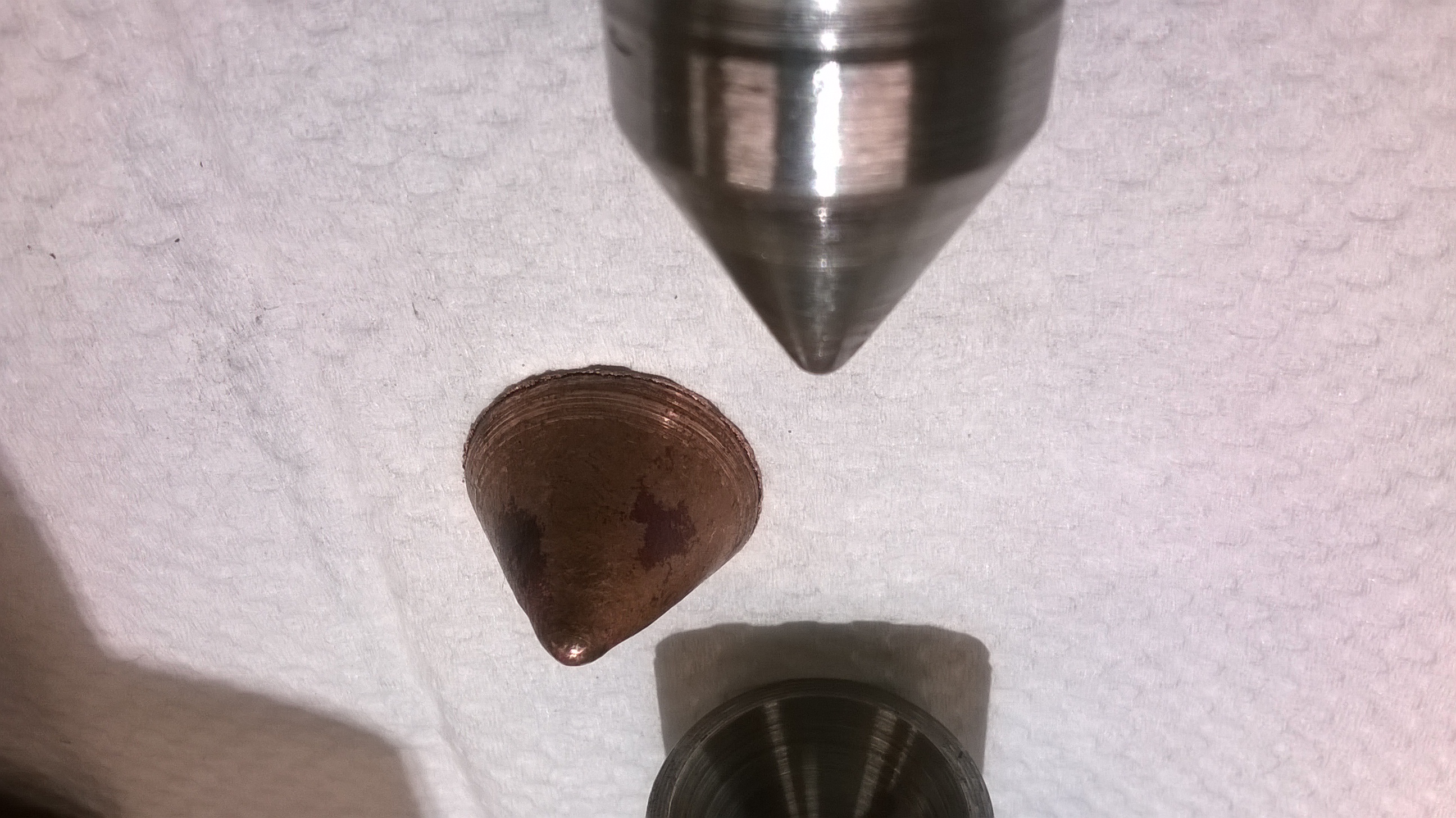 Works pretty good, but the copper has to be annealed several times inbetween of the pressing or the tip of liner will become too stretched and develop