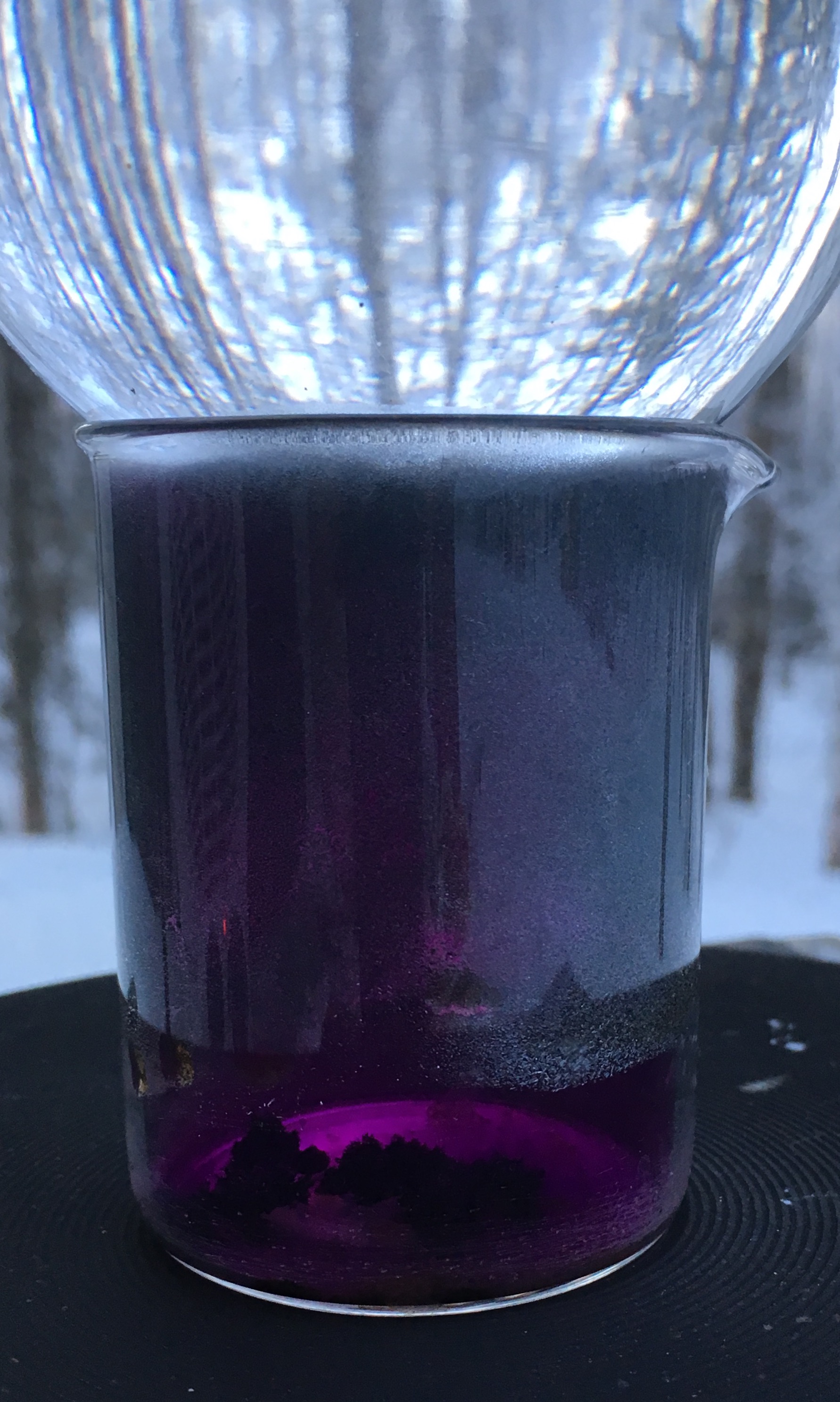 original purple color. I added slightly to much base, however and a green solution and brownish precipitate formed, as well as some purple. Nothing