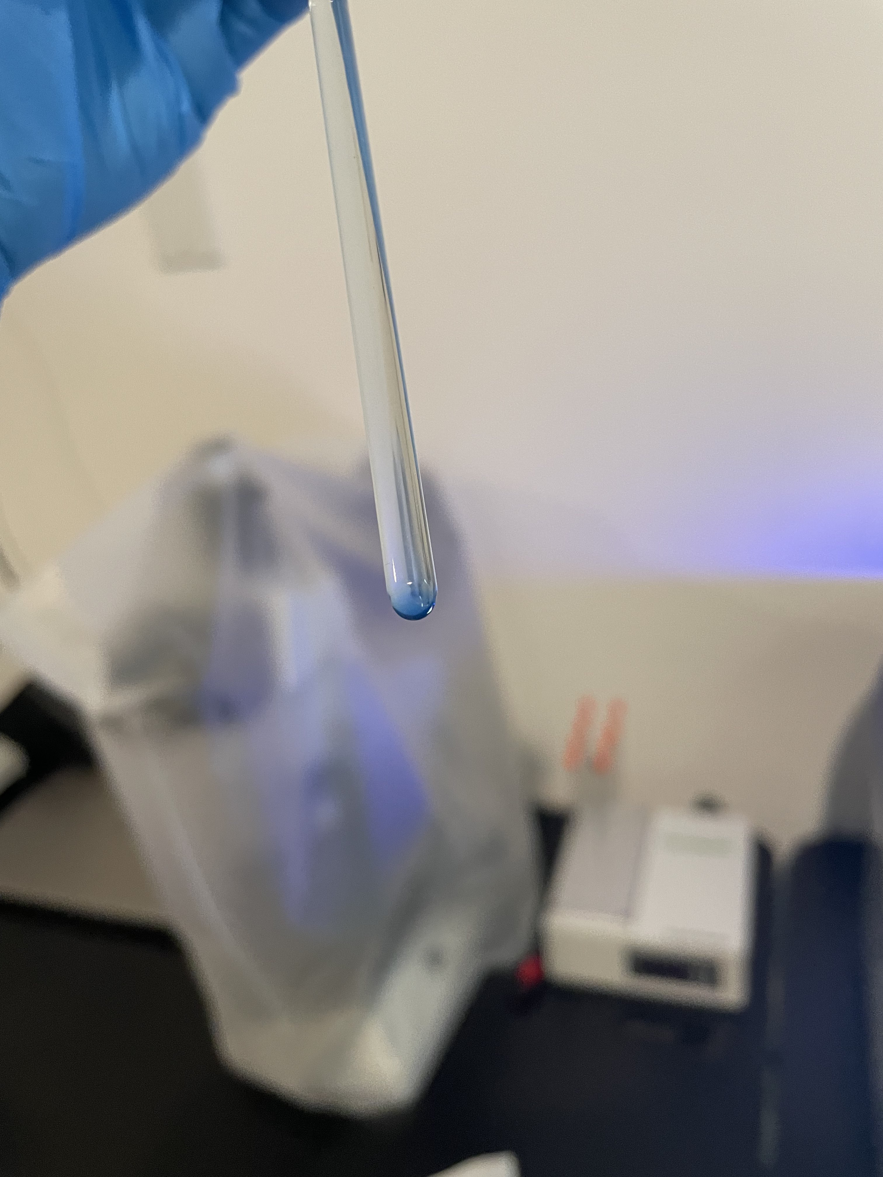 evidence of water in the solvent, the DMSO turned blue at the bottom.