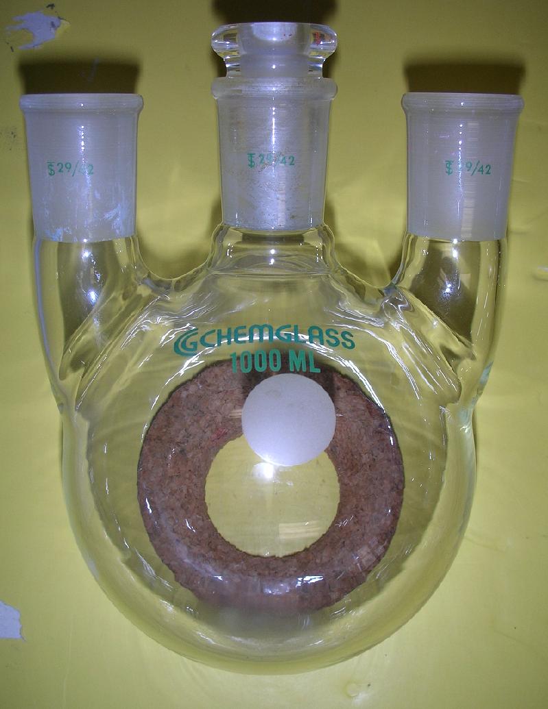 b) 1000 ml rbf w/ 3 29/42 joints - the center joint comes with bonus free 14/20 adapter stuck in it. This would be $10, you might be able to get the joint out, stopper it, or just use it as is.