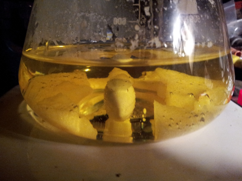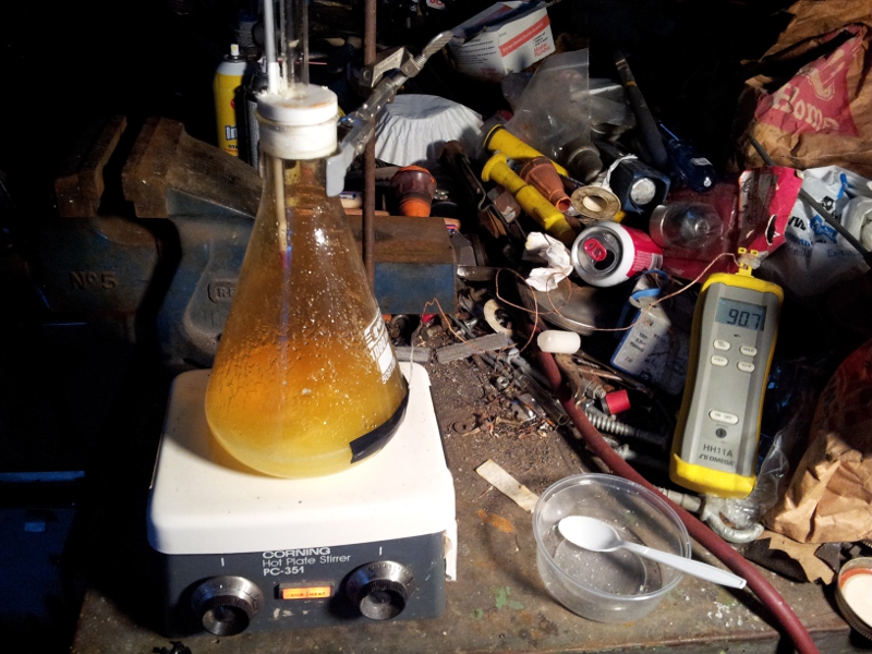 I wasn't sure if allowing it to sit in the nitration bath overnight before applying heat would hurt anything. This morning, however, before I went to