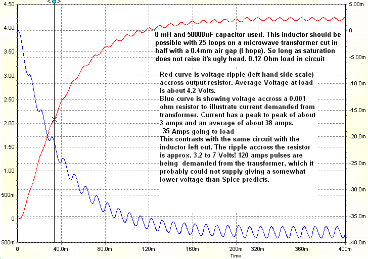 I seen a reference to 'putting the inductor in front of the rectifier' here (third post down the page by TVI). Thought I would mention it. Does not make sence to me.
