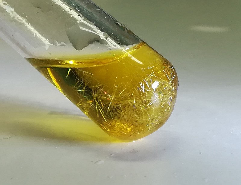 into lovely yellow needles is a tube and then poor of the remaining solution in order to get a nice tube filled with nice yellow needles.