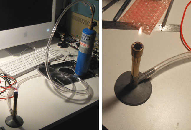 Also, if you use this setup with PVC tubing, make sure to clamp both the gas bottle and the bunsen burner to avoid one or the other from falling on