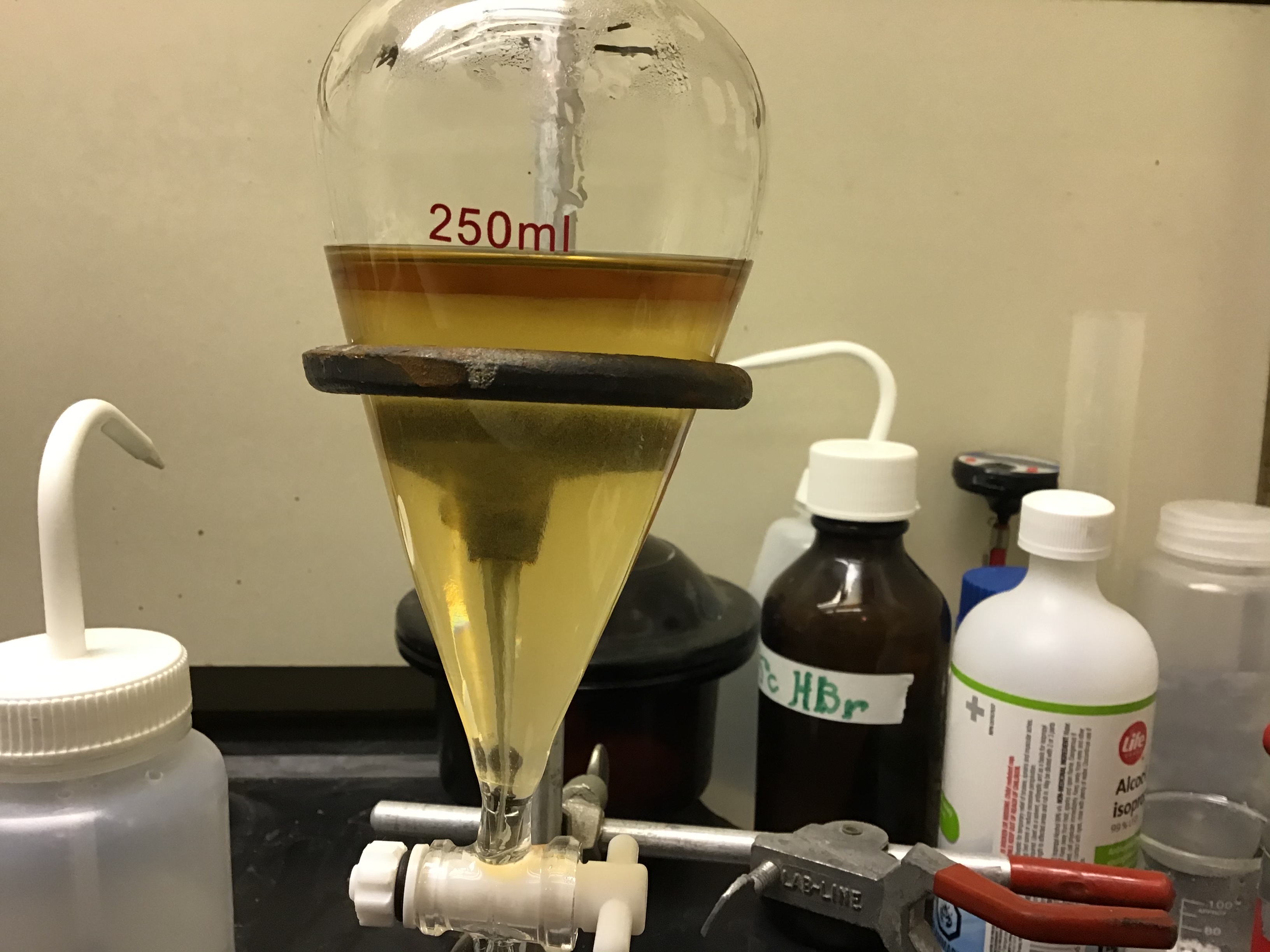 This was a fun project. I made the HBr and then used it for this halogenation to get a high yield. (78%)