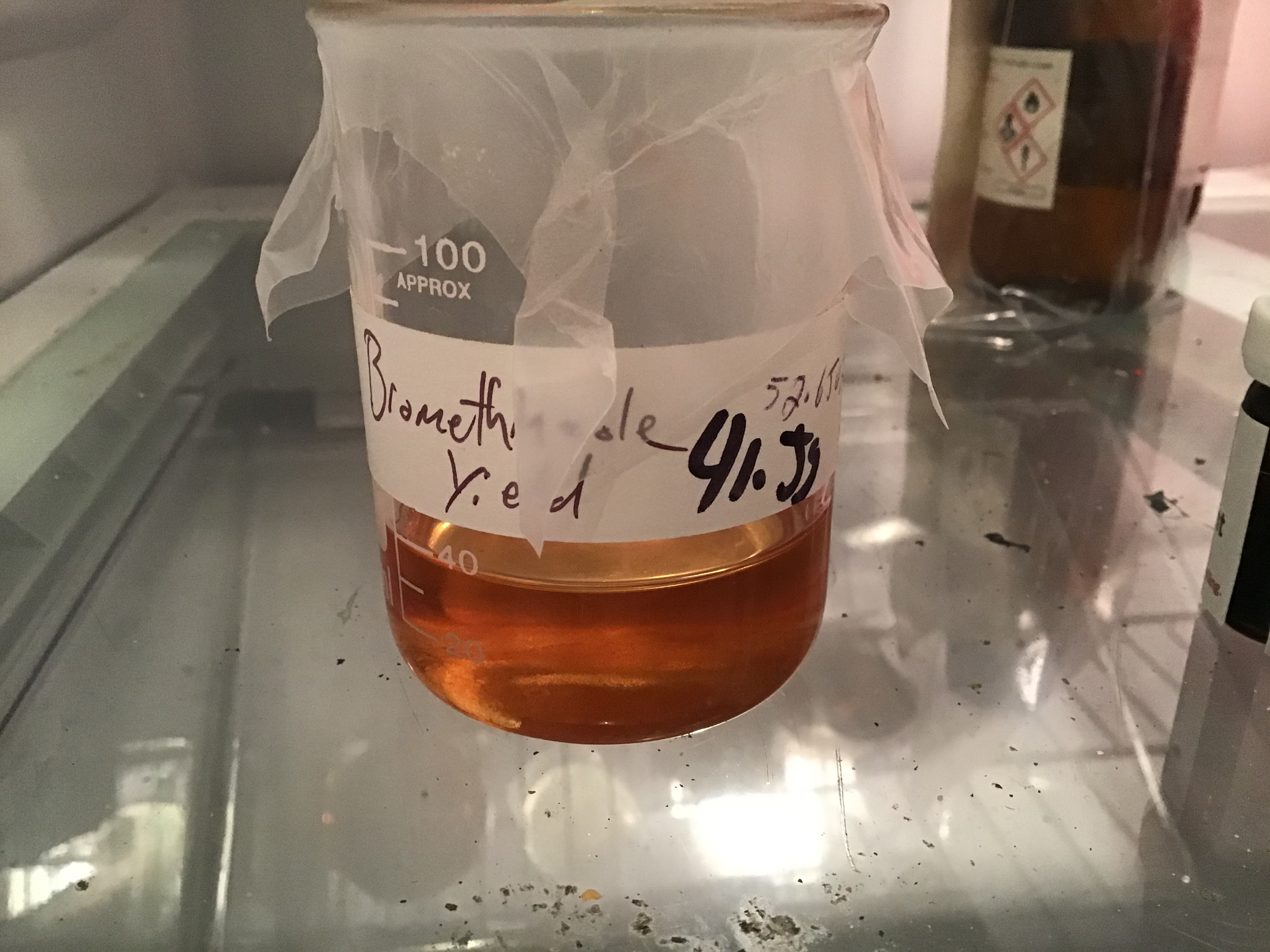 You must add NaCl to make a brine to separate it in the separatory funnel. Collect the freebase bromethiazole and for me it is for research only. I will likely make the HCl salt and store the crystals as an accolade.