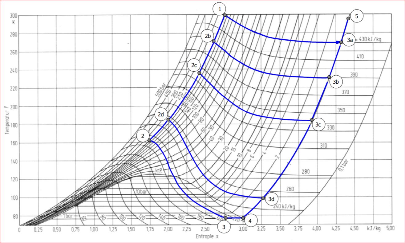 Examining the 2-3-4 curve has a TJ drop in temperature of about 85K for 200 bar and there is almost no increase at 300bar.