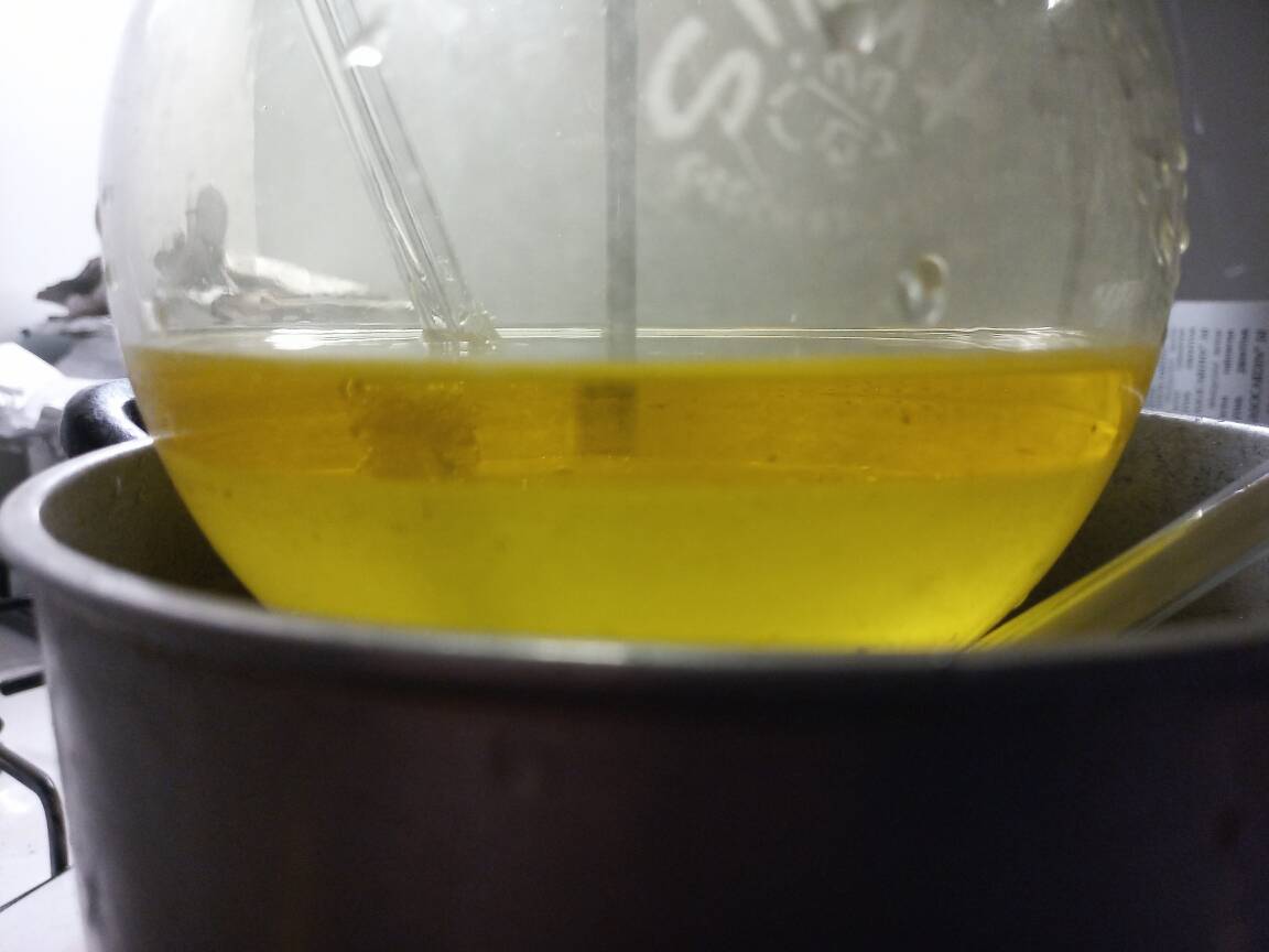 all hypochlorite added and after removing water bath, still continuing magnetic stirring