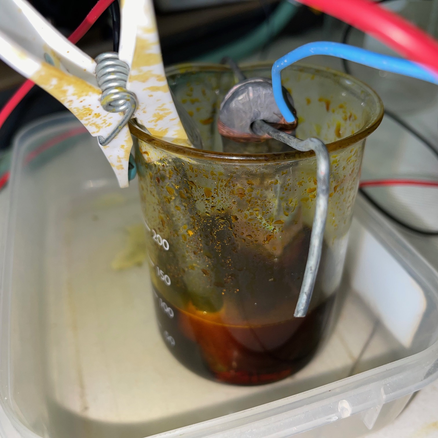 - I replaced the anode with a lead sinker and continued the electrolysis.