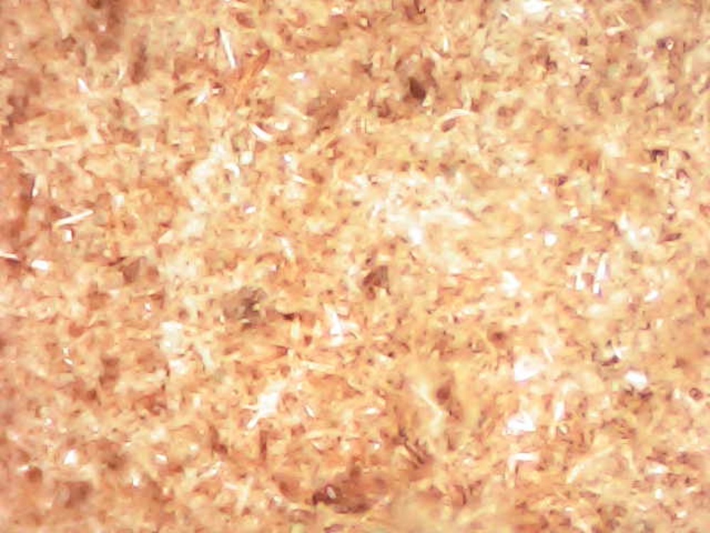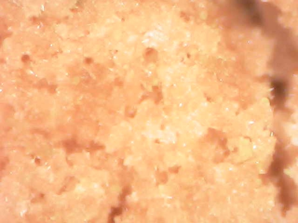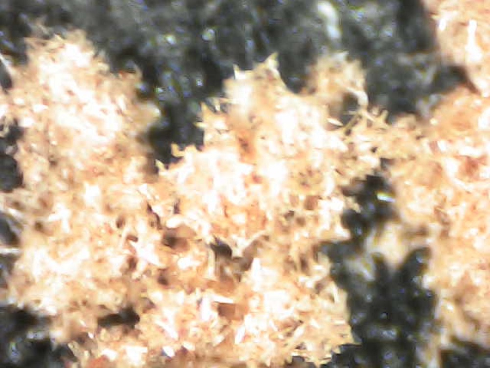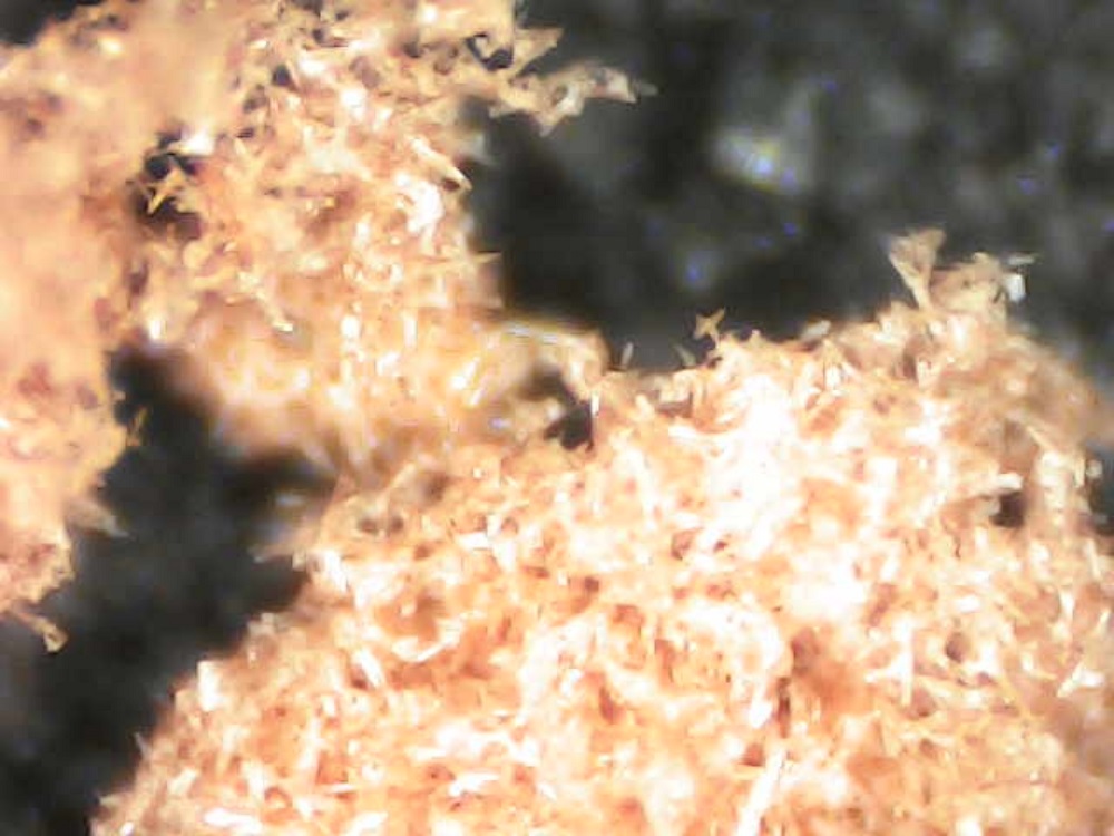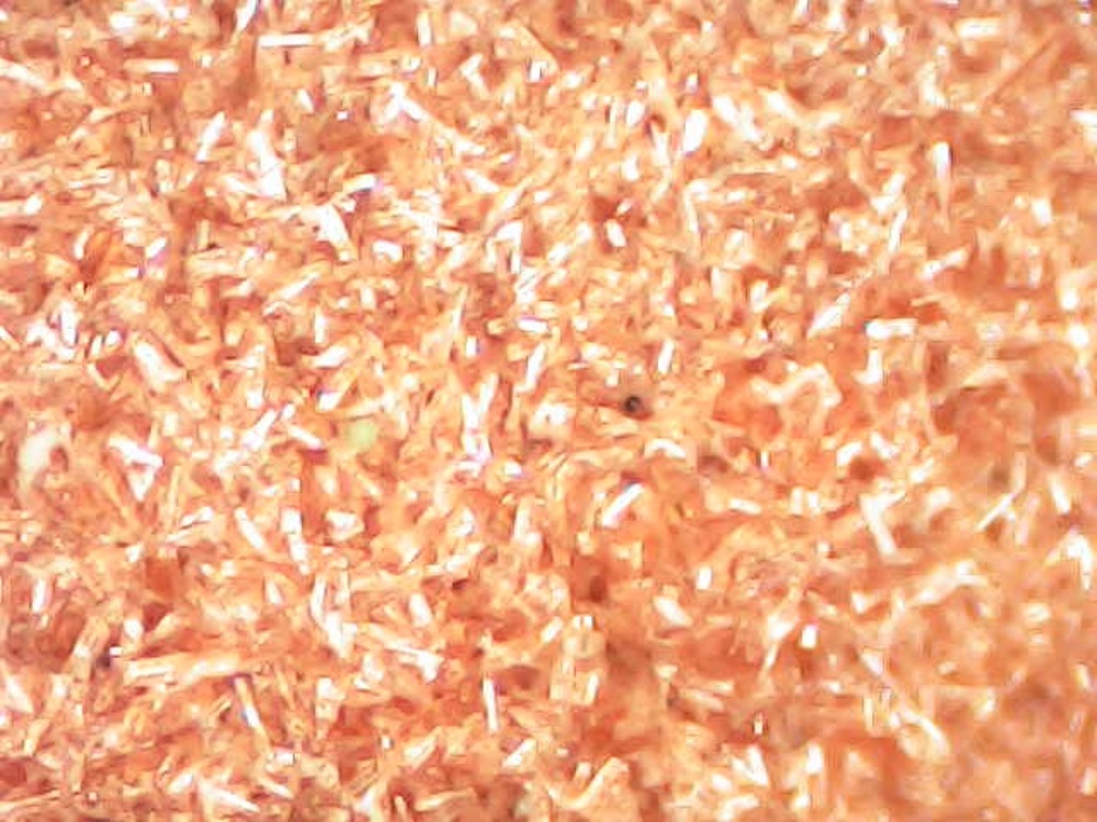 I took this picture through my microscope. It is perhaps not clear in this image, but the little specks seen in the frame are small crystals of NAP.