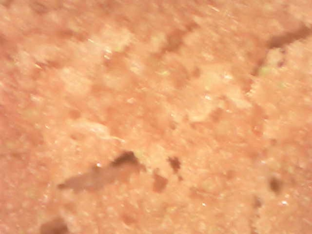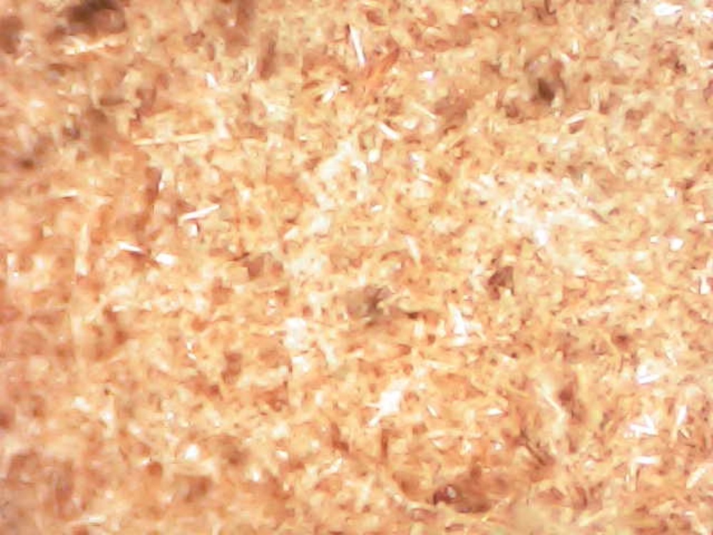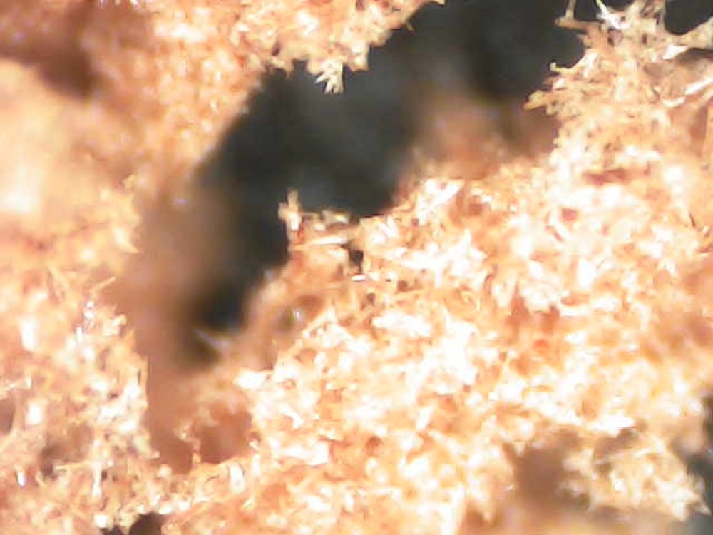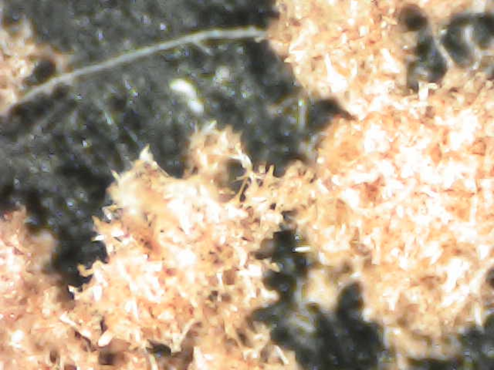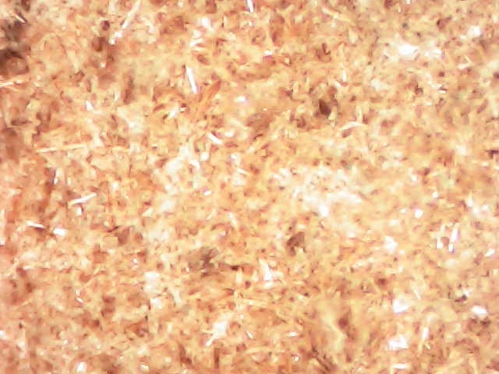I took this picture through my microscope. It is perhaps not clear in this image, but the little specks seen in the frame are small crystals of NAP.