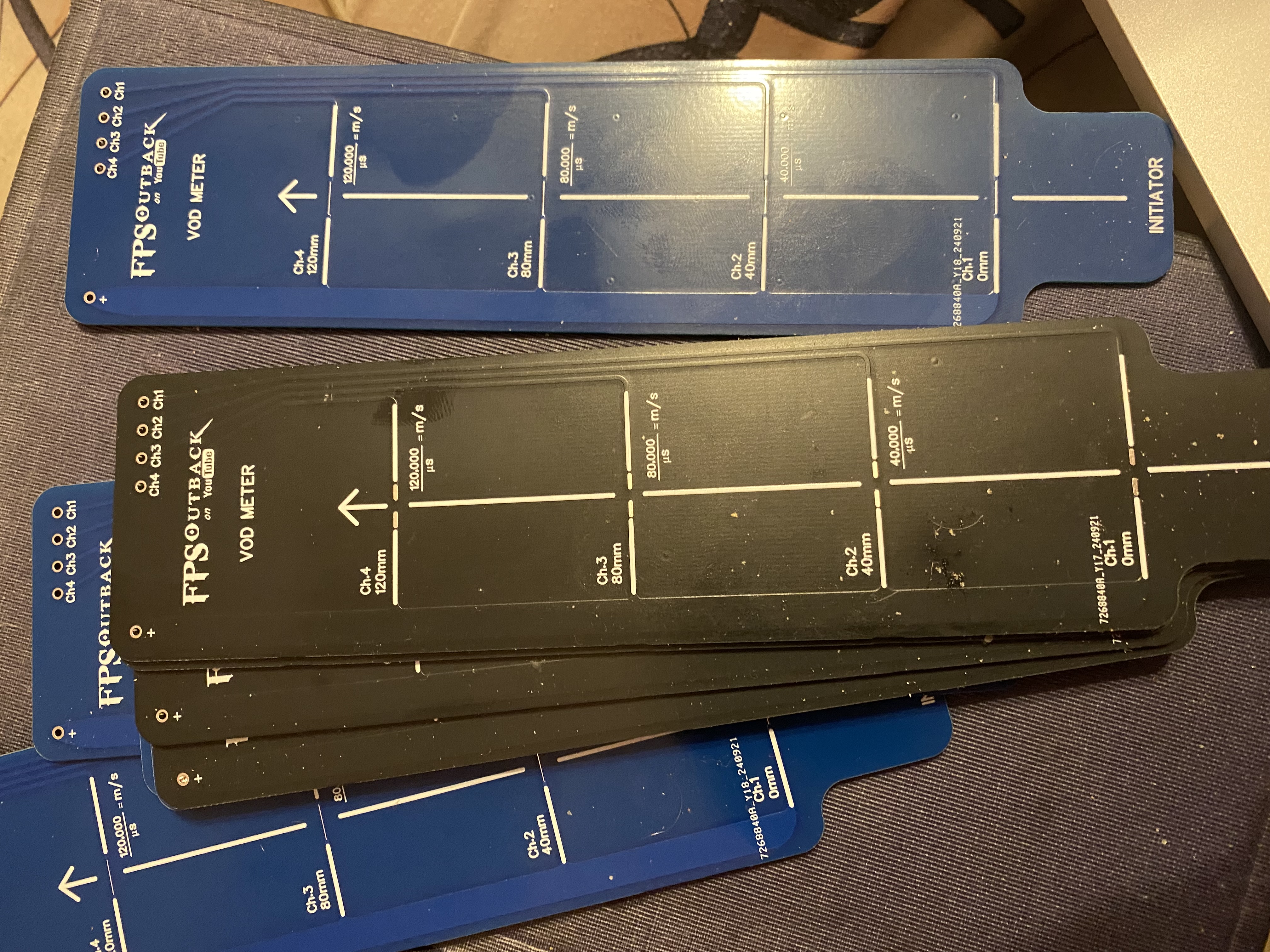 intent to fire a charge across the PCB tracks. 2 types, some to break the 0.2mm track and other to act as ionisation probes with a gap; some 2mm and