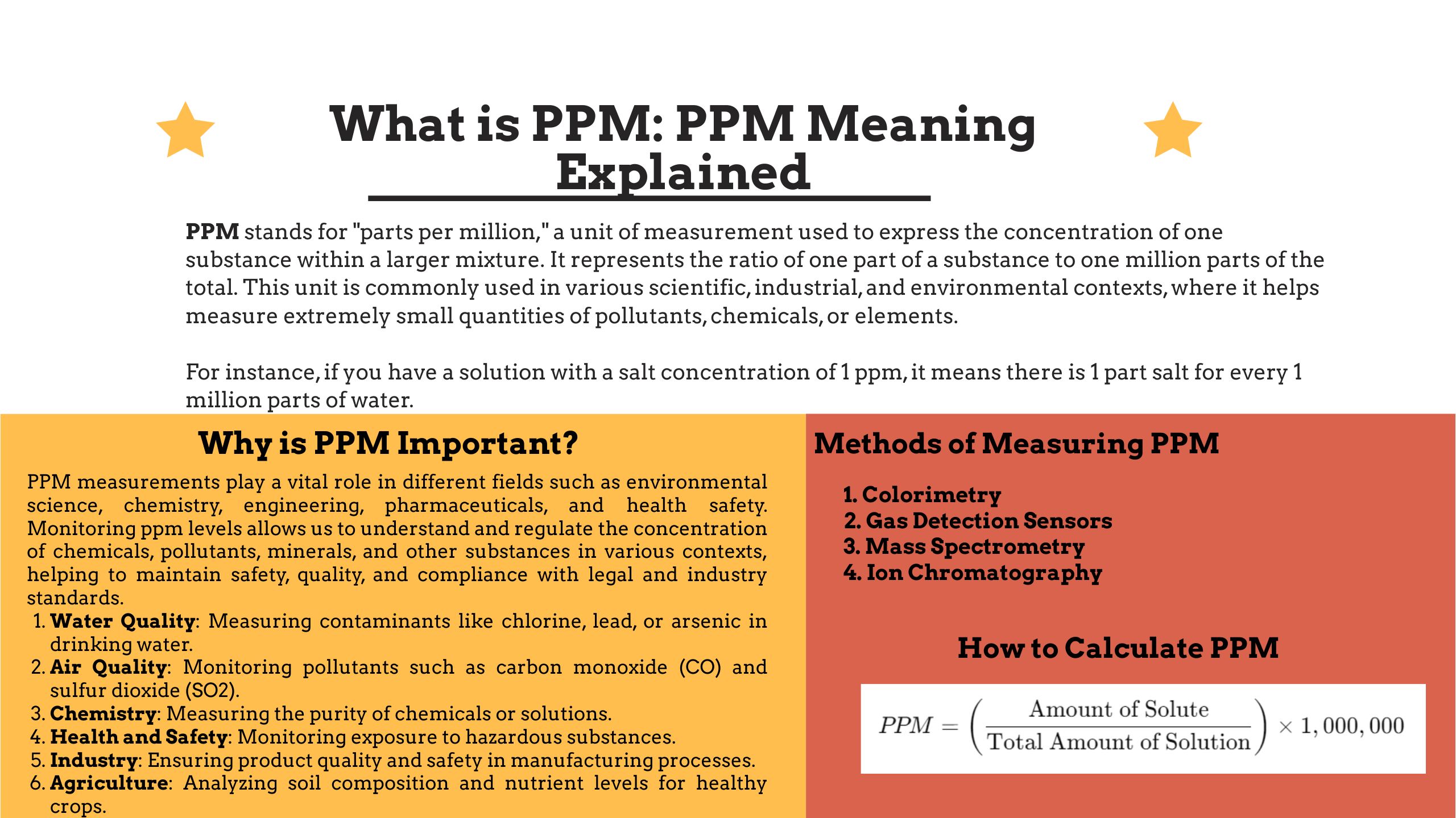 For air, I believe ppm is generally defined as volume of selected gas / total volume of air. For liquids, it’s expressed as mg solute / kg solvent (and for dilute aqueous solutions, often serves as a shorthand for mg/L)