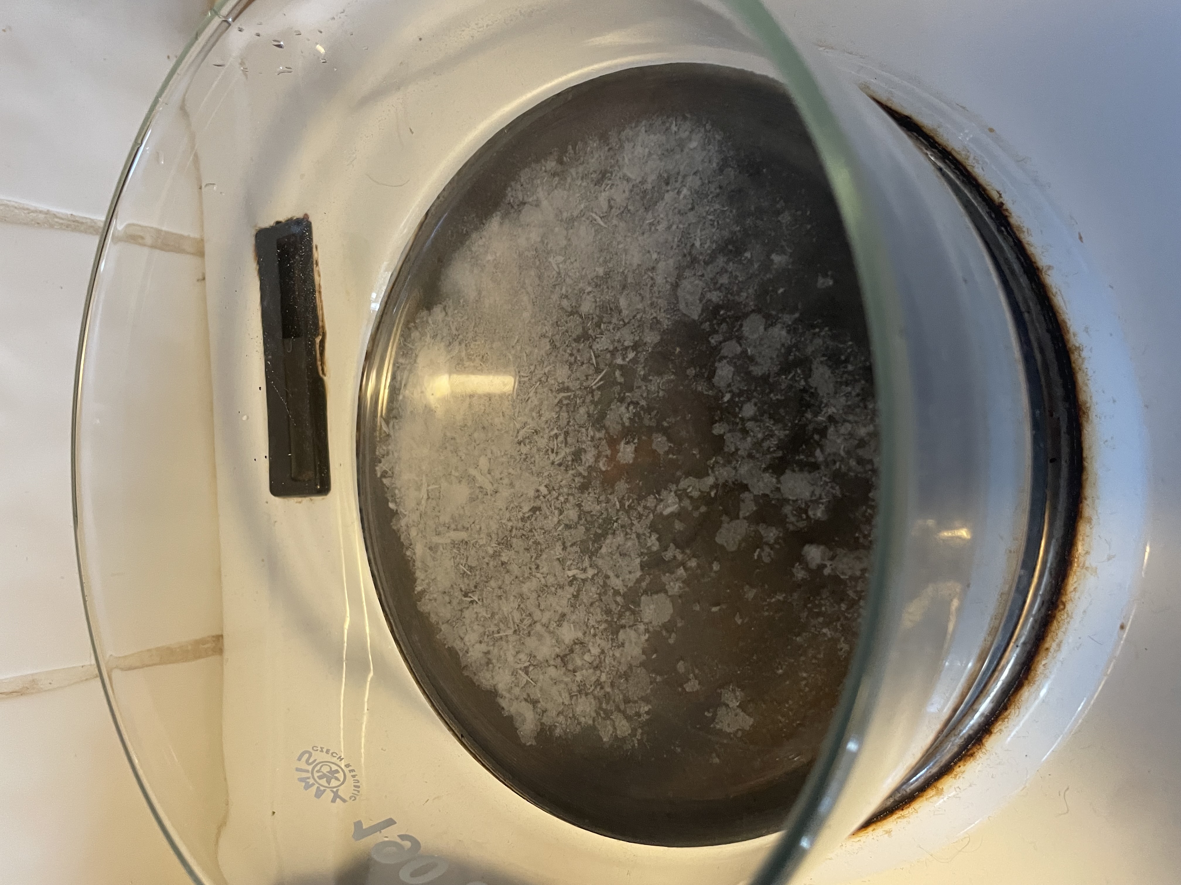 I wonder why it is not white anymore. Maybe my coffee filters left something in the solution. Or the tap water.