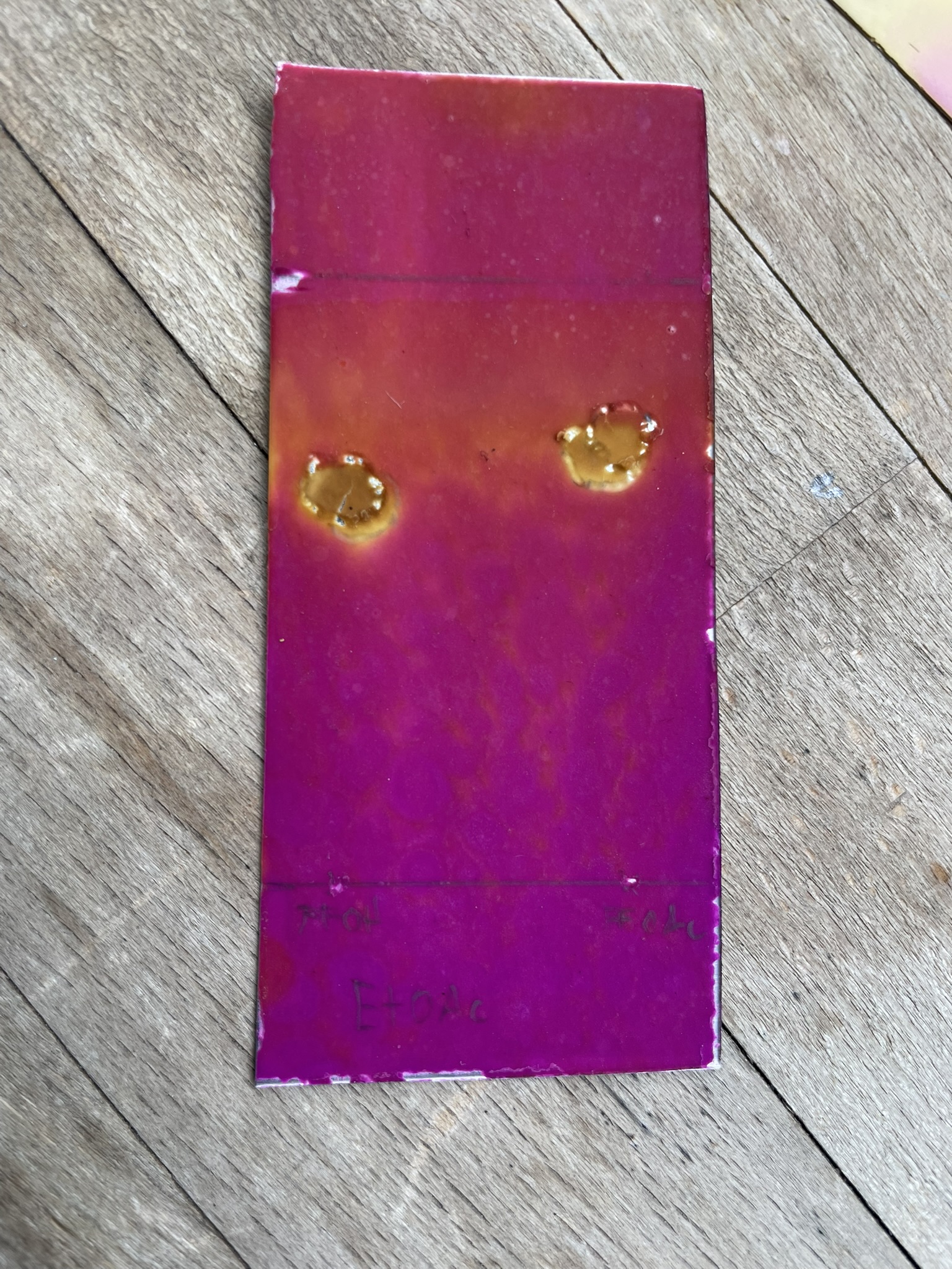 My TLC with MTBE failed completely, probably because of the spots getting submerged in the solvent. In hindsight, I should've used less MTBE and apply the samples a little higher.