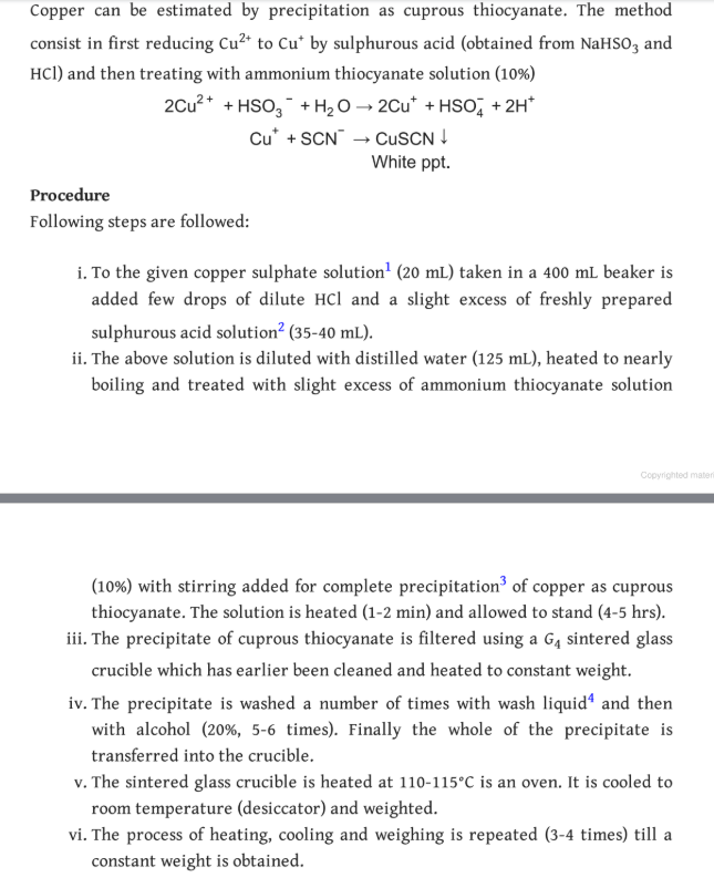 filter paper, white CuSCN precipitates, forming an opaque suspension. Sometime during the precipitation, I added another half a teaspoon of sodium