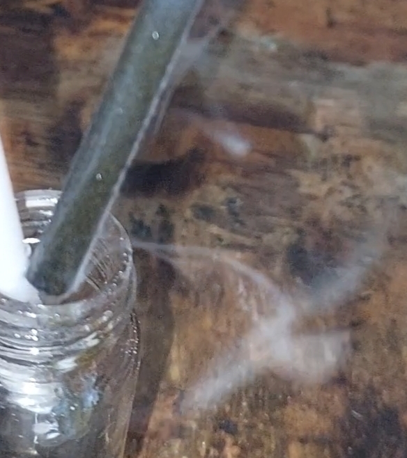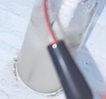 like H2S/SO2, Mo slowly and invisibly corrodes into Mo(blue) above the meniscus, which oxidizes and turns transparent on contact
