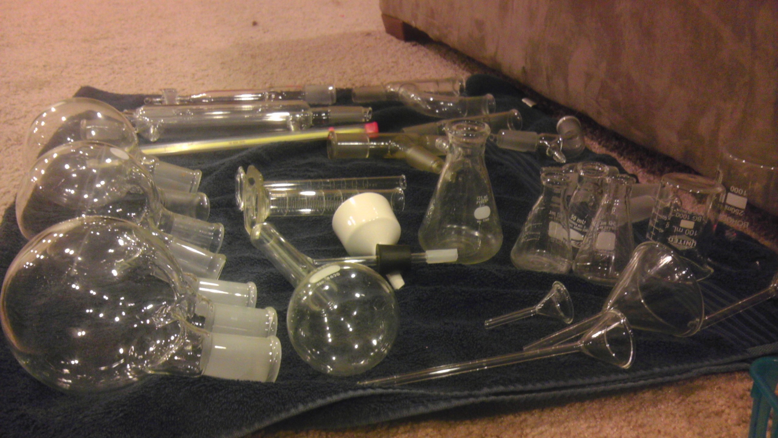 I'd like the straight 3 neck and the funnel lot, and if that is glass wool I'll take it...