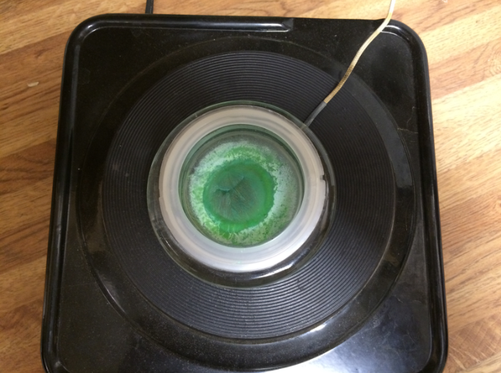 Disappointed at the trihydrate crystal attempt.. I added a bit of distilled water, stuck it on the hotplate above 30 C, and let it dry. The result
