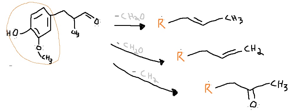 Is it possible to convert a molecule with a 2-methylpropanal to a ketone or propene, that correspond to the following structures?
