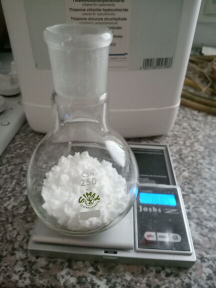 Into 250 ml flat bottom flask was put 14,4 g (42,7 mmol) thiamine chloride hydrochloride C₁₂H₁₇ClN₄OS * HCl, Molar Mass 337.27 g/mol.
