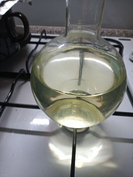 Stirbar added into the flask and the flask was put into aluminium pot with oil bath onto magnetic stirrer.