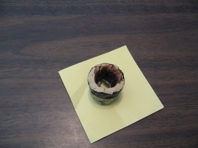 The tin foil cork adapter was somewhat deteriorated on the inside surface. This was not covered with tin foil. A bored EPDM rubber stopper might work just as well or better.