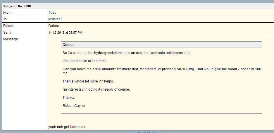 do occasionally lead to stimulating discussion. So, maybe let them (all who come seeking hydroxynorketamine) all work it out together, if they can?