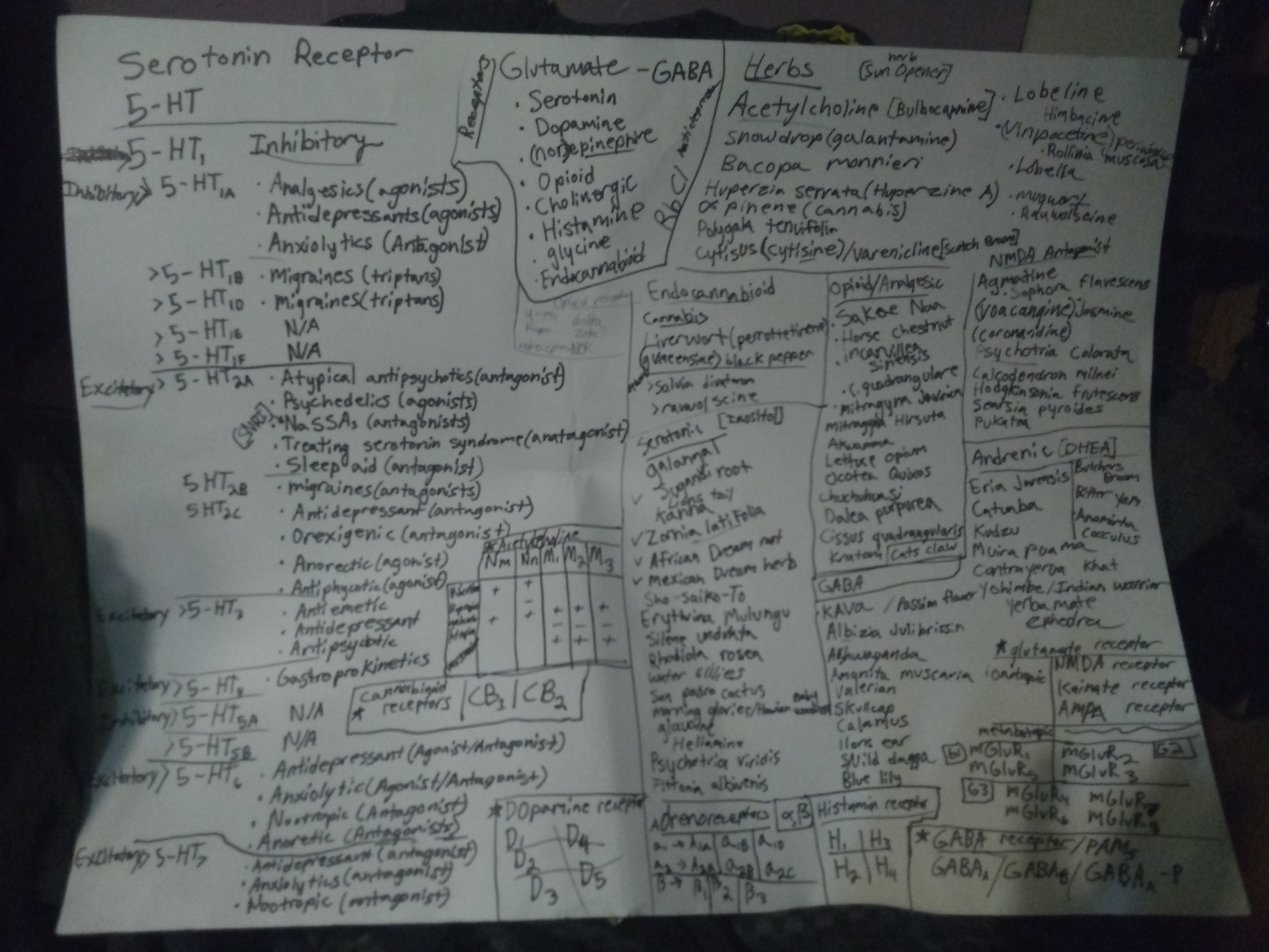 I have been working on a project took a while in categorizing herbs in what general receptors are activated