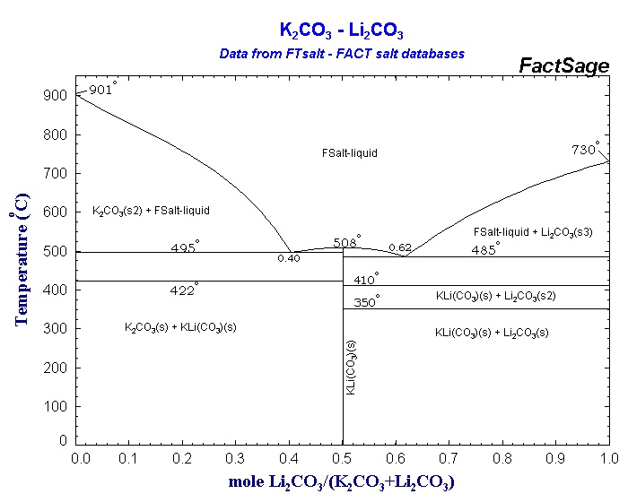 The three carbonates probably form a eutectic melting at a lower temperature than any of the carbonates on their own.